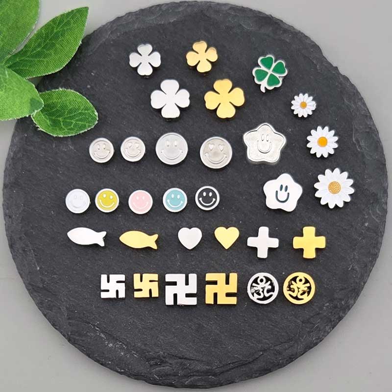 비즈톡 [SS-1-00]써지컬스틸 통과형펜던트 29종 스마일별 네잎클로버 하트눈스마일 물고기 모음 ,1개