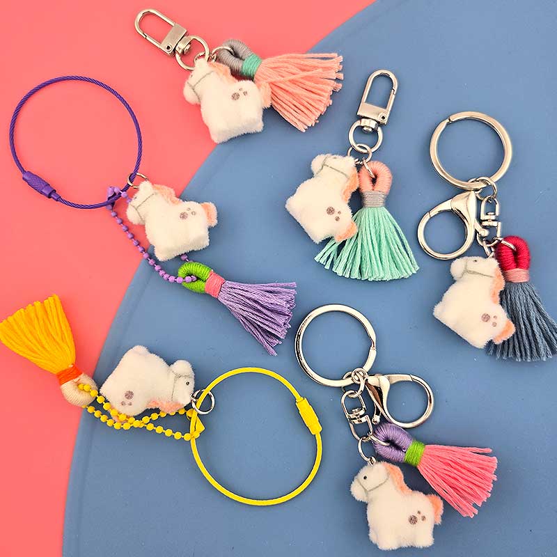 비즈톡 [DIY키링] 전통매듭 후로킹붉은말돌돌이태슬키링 후로킹말 #돌돌이면태슬40mm #전통매듭만들기