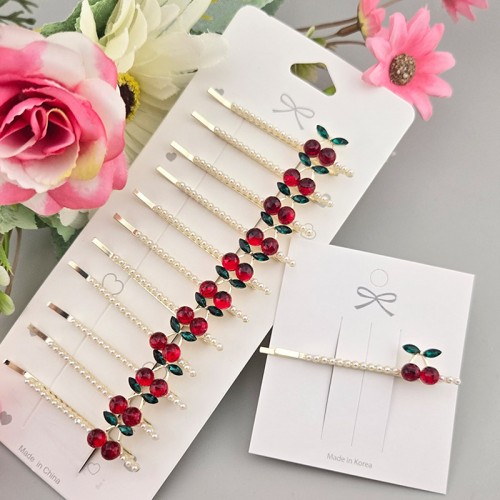 비즈톡 [HA-1-01]헤어악세사리 헤어핀 체리진주일자핀 60mm 진주헤어핀 체리진주핀 포인트핀 ,1개