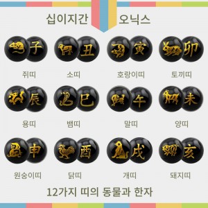• 비즈톡 [J1-621-00]원석라운드 8mm 10mm 십이지간 12가지동물 한자 오닉스 금박 ,1개
