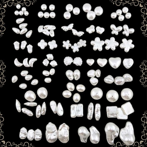 • 비즈톡 [BP-2-00]아크릴진주바로크 바둑알진주 천사날개 나비 눈꽃 가리비 조개 쭈글타원 칩스 38종 모음 (1개)