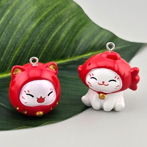 • 비즈톡 [PB-2-31]아크릴펜던트 금전운 행운고양이 마네키네코 행운인형 2종 ,1개