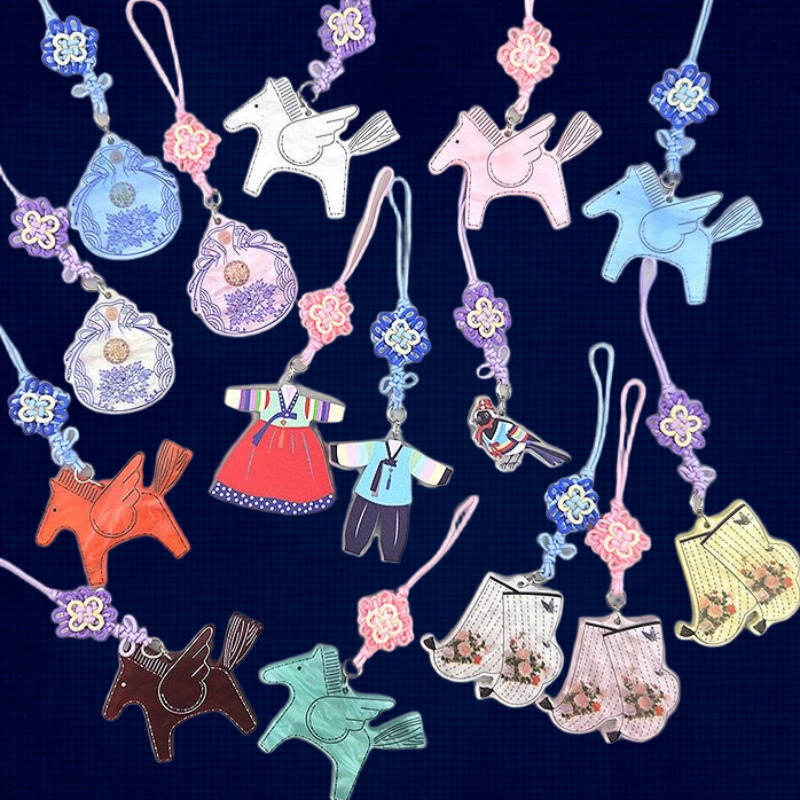 • 비즈톡 [PB-4-80]새해 선물하기 좋은 붉은말펜던트 색동한복 행운부적 액막이명태 (키링용)