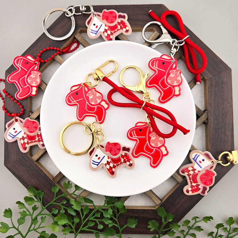 • 비즈톡 [PB-4-53]아크릴펜던트 2026붉은말의해 복주머니말펜던트 40x35mm 말펜던트 (키링용) ,1개