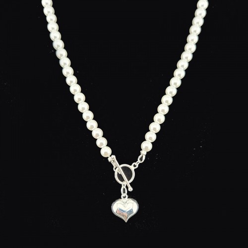 비즈톡 [DIY목걸이] 실버 하트 진주 목걸이 #핵진주6mm #실버하트18mm #실버토글바 #심플토글바 #가디언