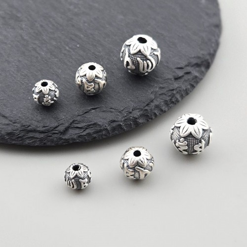 비즈톡 [SVP-06-33]순은펜던트 실버999 육자진언 옴자볼 6/8/10mm 염주팔찌재료 ,1개