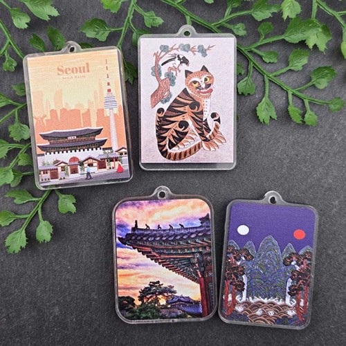 비즈톡 [PB-4-12]아크릴전통펜던트 서울의 상징 광화문 호랑이 단청 일월오봉 사각 전통굿즈만들기재료 ,1개