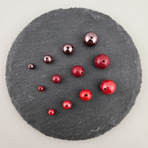 비즈톡 [JS-1-05]경면주사 정제 홍사 라운드볼 6/8/10/12mm 다홍 ,1개