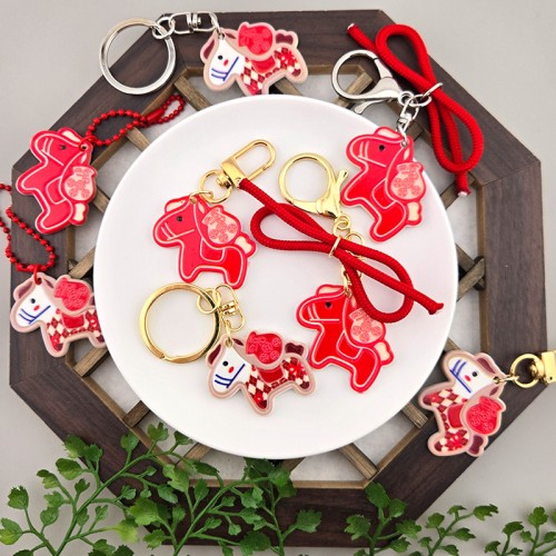 비즈톡 [PB-4-53]아크릴펜던트 2026붉은말의해 복주머니말펜던트 40x35mm 말펜던트 (키링용) ,1개