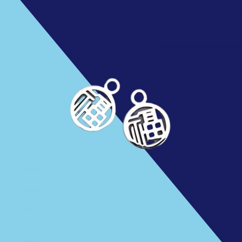 • 비즈톡 [S4-01-005]써지컬스틸 펜던트 복자펜던트 10x13mm 무도금 (새해복많이펜던트) ,1개