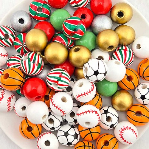 • 비즈톡 [PA-017]우드볼 야구공 농구공 축구공 단색 우드볼 크리스마스볼 16mm ,1개