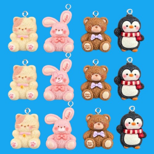 • 비즈톡 [PB-2-35]아크릴펜던트 동물4종 고양이 토끼 곰 펭귄 동물펜던트 (키링용) ,1개