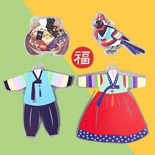 • 비즈톡 [PB-4-80]새해 선물하기 좋은 붉은말펜던트 색동한복 행운부적 액막이명태 (키링용)