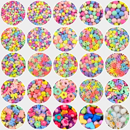 • 비즈톡 [RA-3-00]아크릴파스텔볼 6-16mm 꽃 하트 나비 별 토끼 리본 이니셜 파스텔멀티 25종 모음