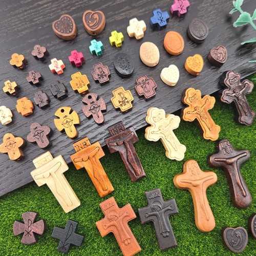 • 비즈톡 [DW-7-00]우드십자가 자작나무 카톨릭묵주만들기 XP 십자가 성모자 방석 46종 모음