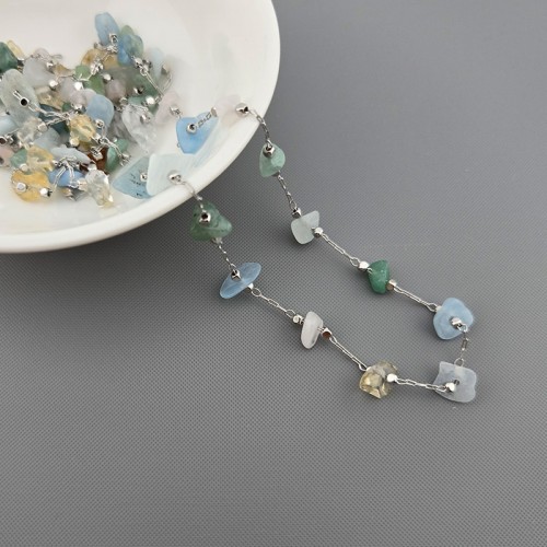 비즈톡 [TC-21-11]악세사리부자재 비즈체인 원석칩스 파스텔민트믹스 OR ,1M
