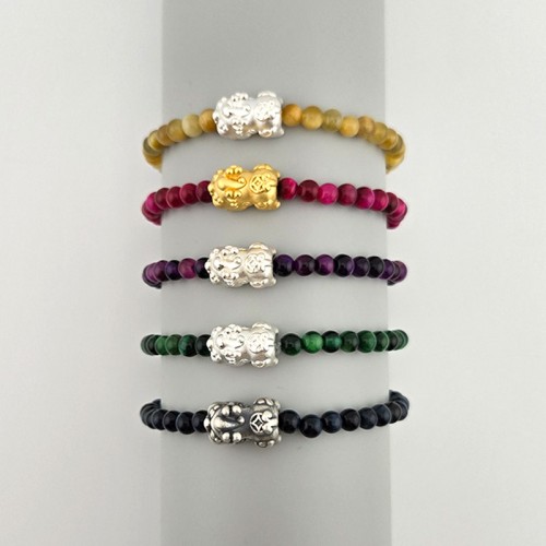 비즈톡 [DIY팔찌] 실버 아기비휴 컬러호안석 원석팔찌 #4mm #옐로호안석 #그린호안석 #퍼플호안석 #핑크호안석 #블랙호안석 #우레탄줄0.5mm