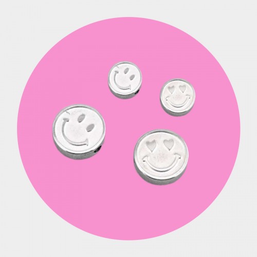 > 비즈톡 [S2-1-06]써지컬스틸 펜던트 하트눈스마일통과형 6mm 8mm (내경1.1mm) 양면스마일 ,1개