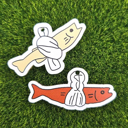 비즈톡 [PB-4-52]아크릴전통펜던트 액막이명태2 실타래명태 39x24mm (에어팟고리용 키링용) ,1개